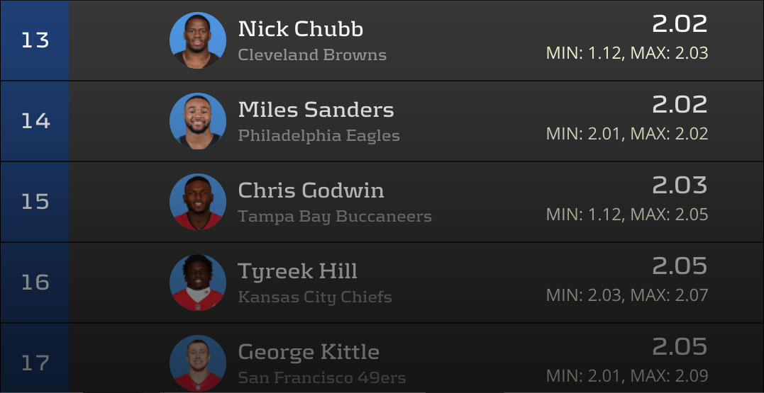 Access start-up player values in the offseason and during the NFL regular season. The Dynasty Deluxe Team conducts mock drafts every month to provide critical visibility into player demand, especially in the critical months after maiden dynasty league start-up season has concluded.